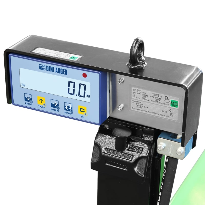 Pair of forks with an integrated weighing system for lift trucks, easy to use, sturdy, and reliable. The optional wireless indicator to install in the cabin makes weighing operations easier and has a large range of accessories. Operates by a rechargeable battery or directly powered from the lift truck. Compatible with any lift truck having a DIN 15173 – FEM fork holder plate, of the IIA (IIB optional) or IIIA class. Available in CE-M approved version.