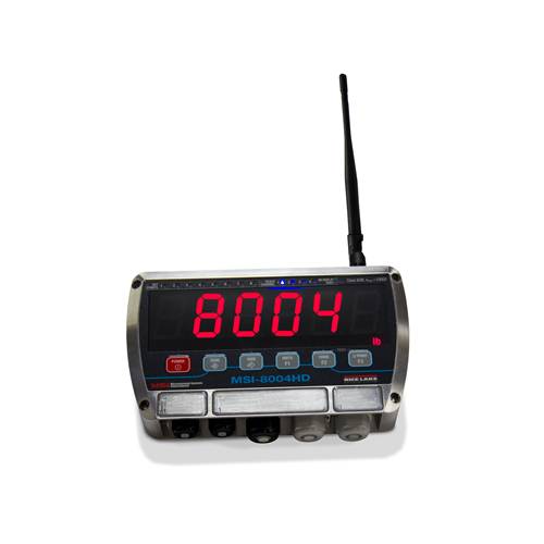 The milled anodized aluminum, IP65-rated enclosure is mountable in either a direct panel mount or included tilt stand. The MSI-8004HD is highly adaptable for integration with overhead crane weighing systems, providing visibility for crane cab and fl oor operators. The MSI-8004HD is compatible with all MSI-ScaleCore™ crane scales, dynamometers and TranSend™ systems. The meter version can also be used with any standard load cell or scale base, supporting up to four independent measurement channels.